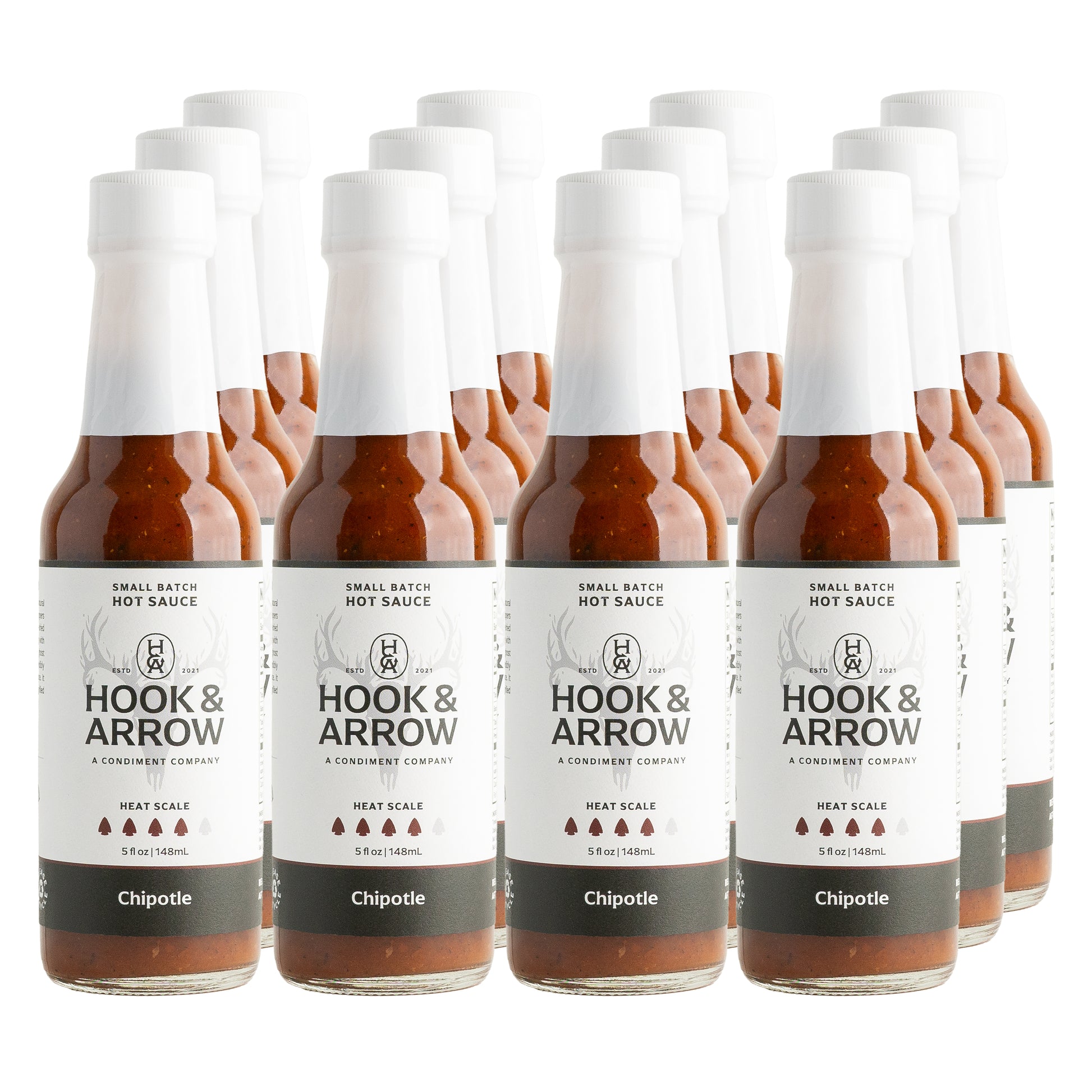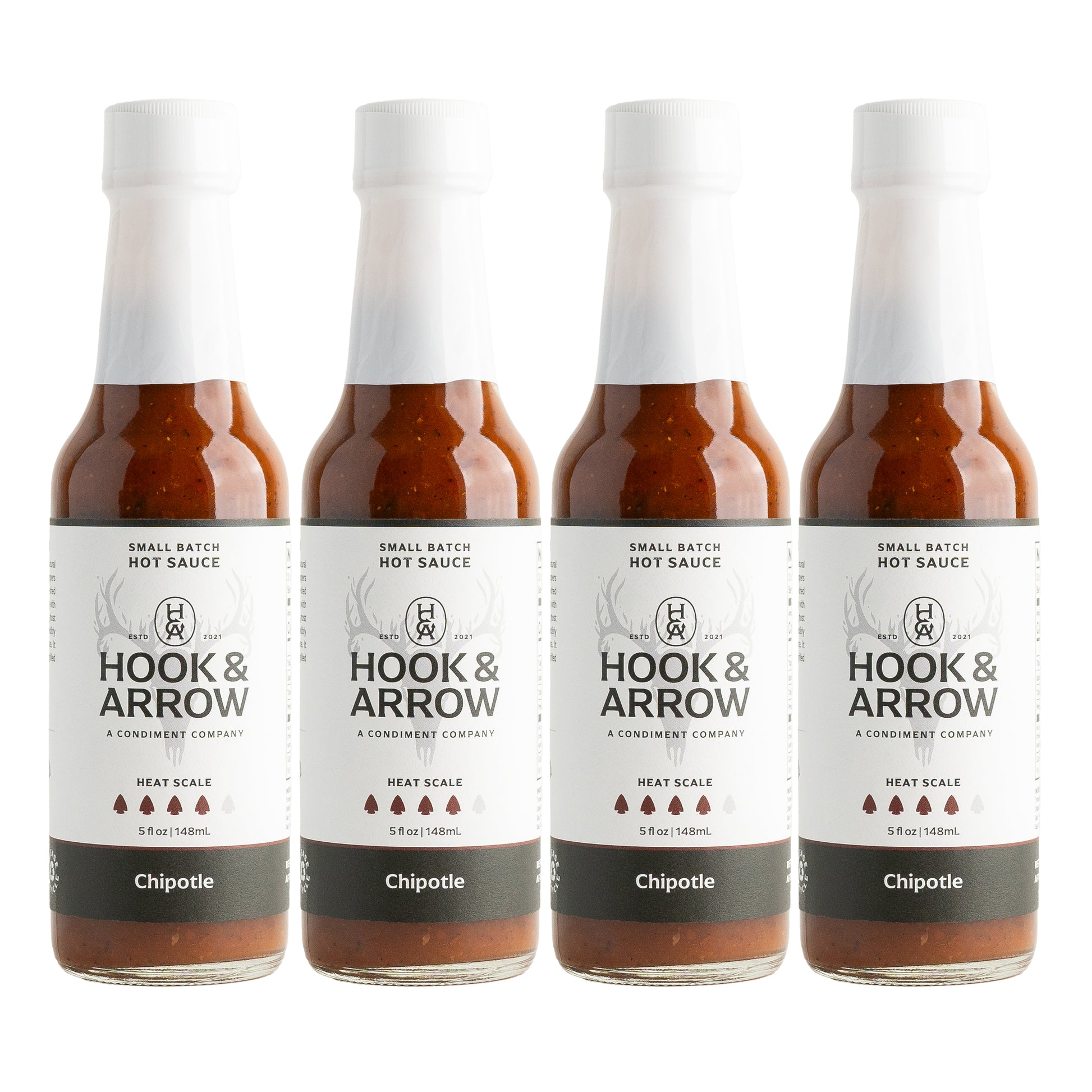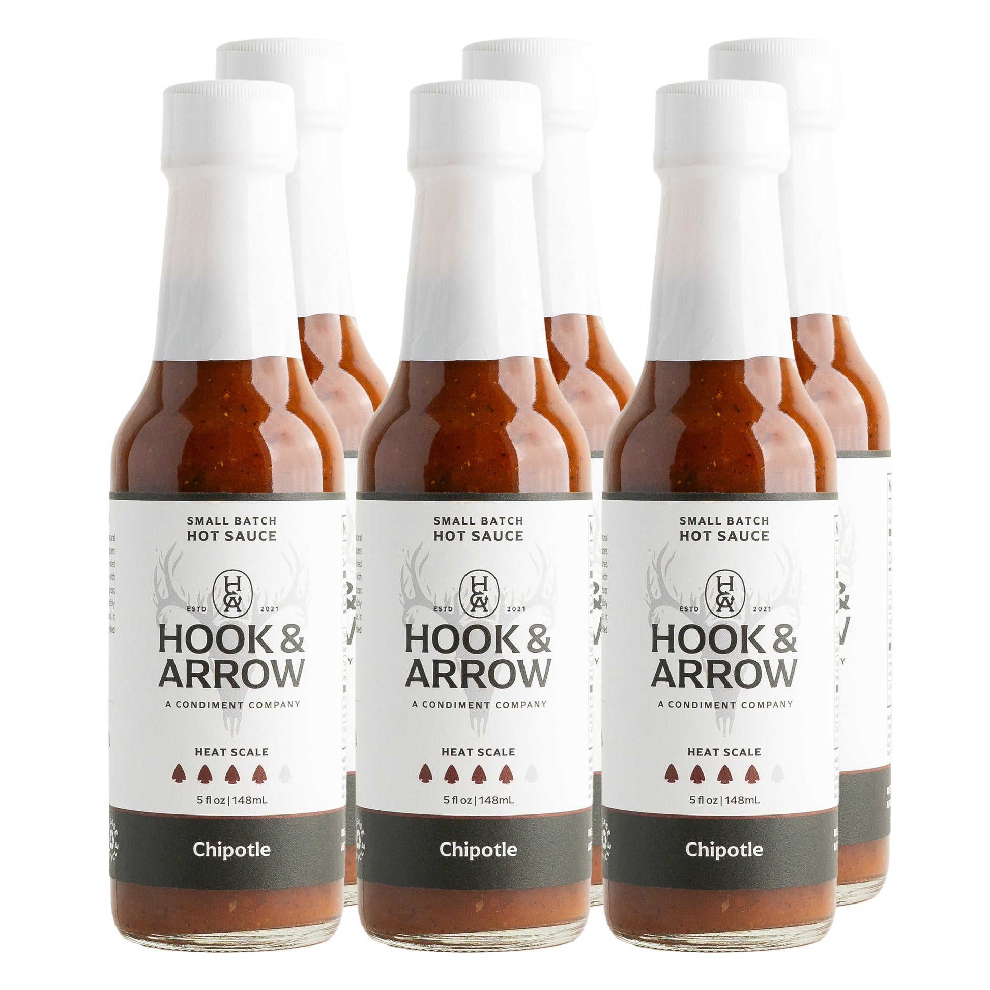 Hook & Arrow's CHIPOTLE hot sauce combines the natural smokey flavor of chipotle peppers with the sweetness of sun-dried tomatoes and raisins, finishing with the building heat from ghost peppers. This makes for an incredibly complex yet balanced hot sauce. It pairs well with Mexican food, grilled meat, and grilled vegetables.