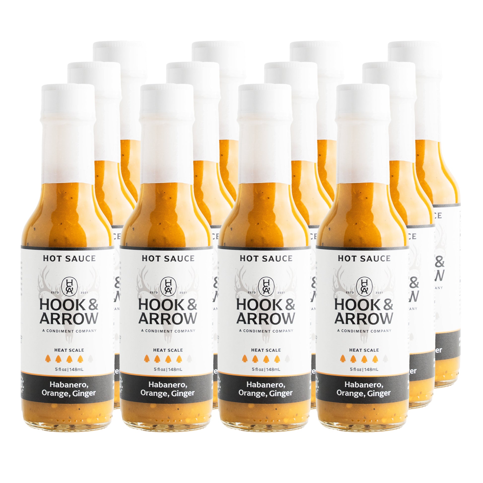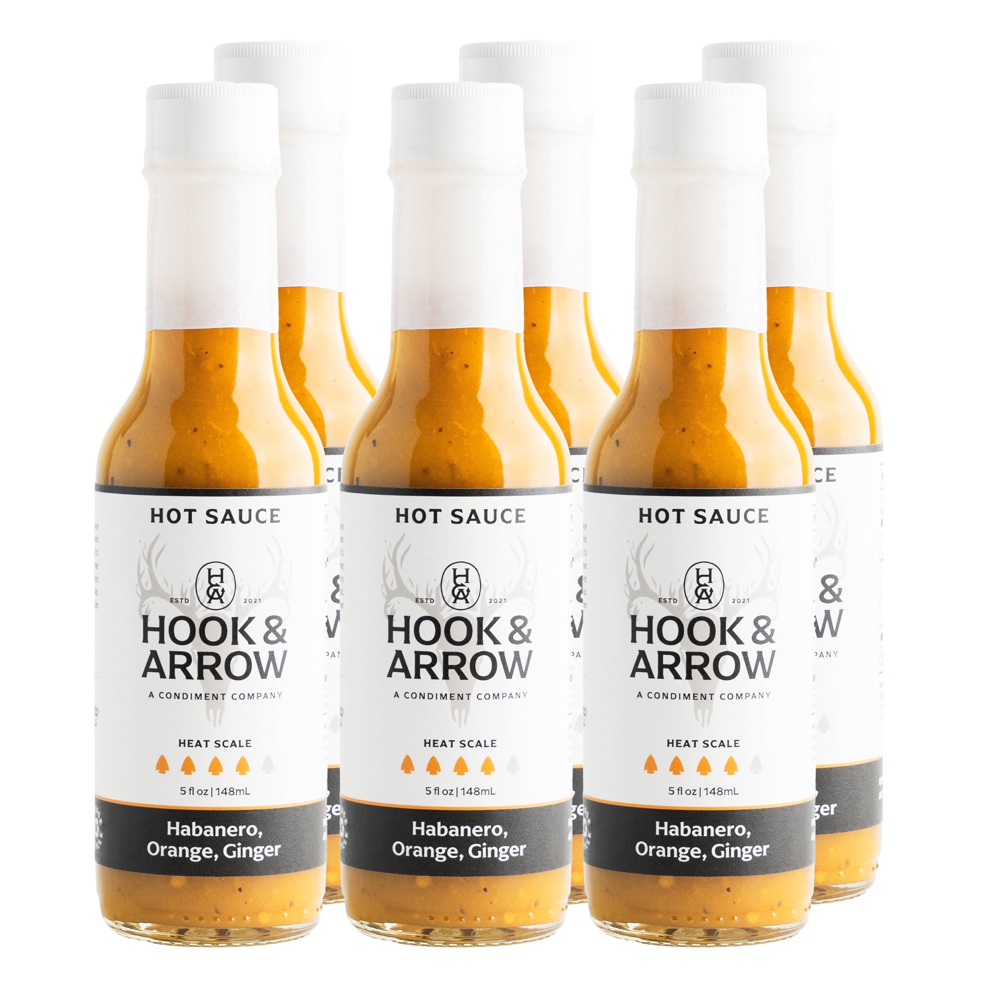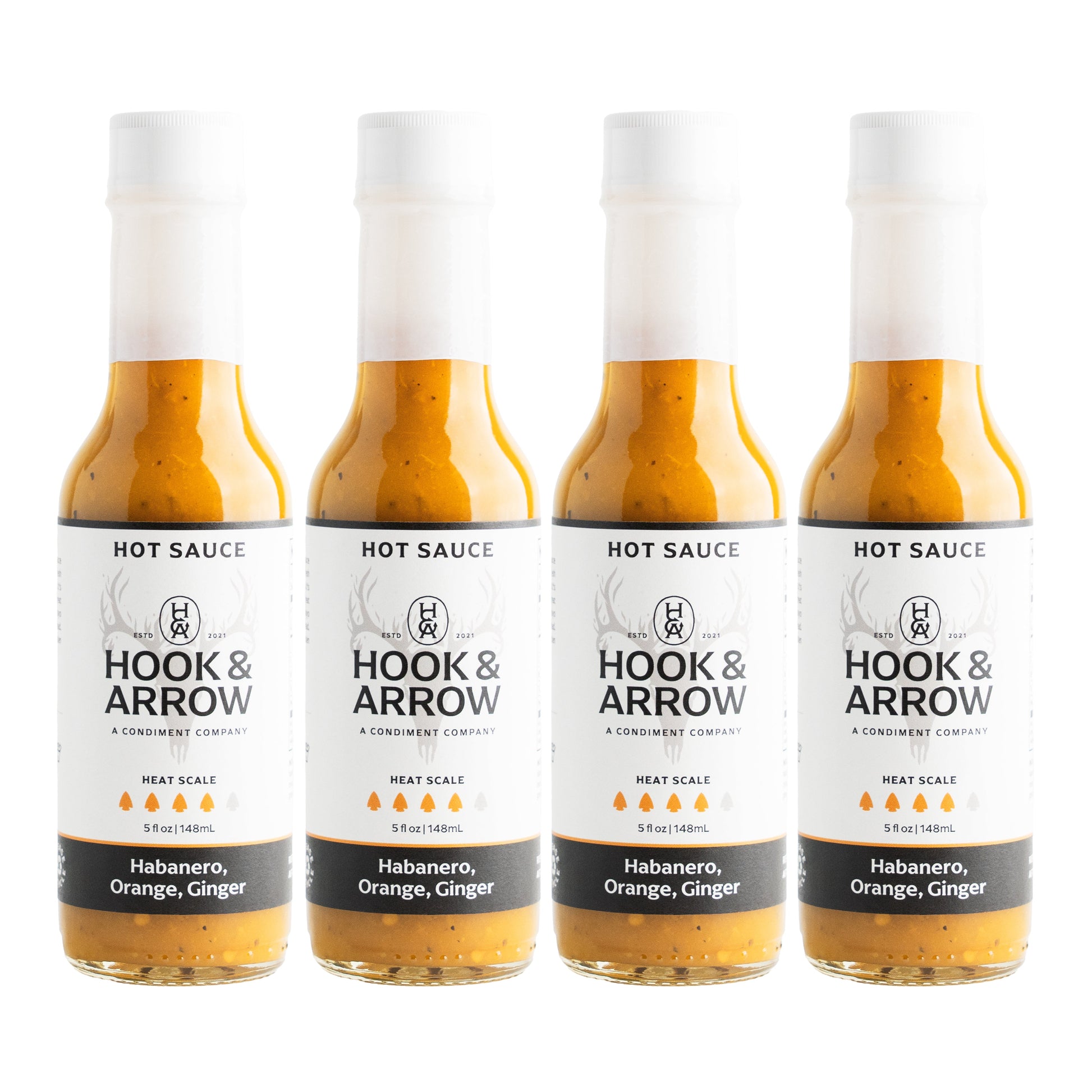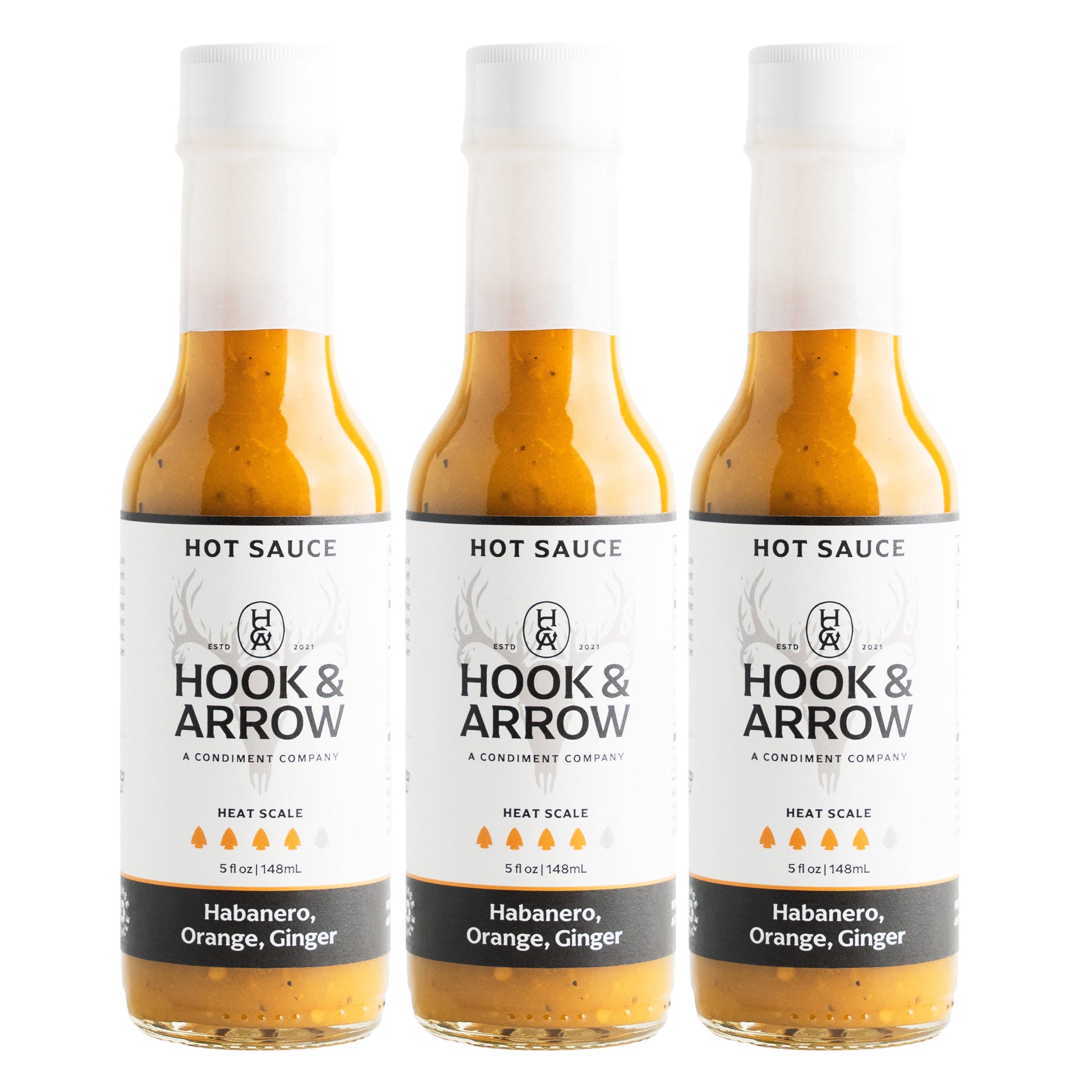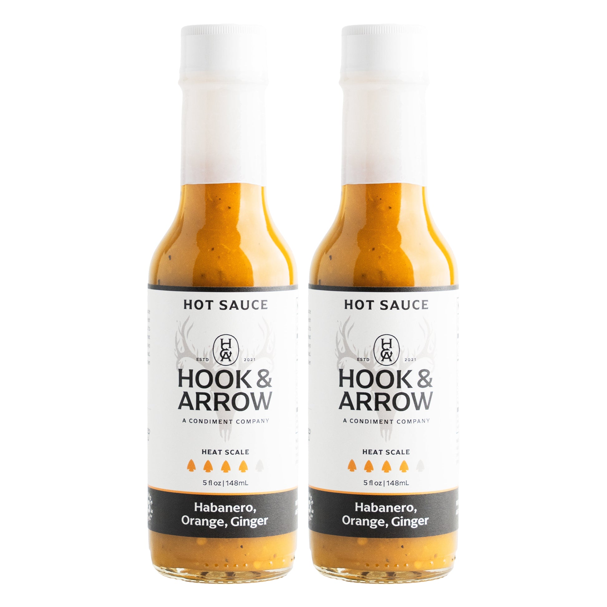 Hook & Arrow Habanero, Orange, Ginger hot sauce has spicy citrus notes that will brighten up any dish. With a combination of habaneros, orange juice, ginger and orange zest this is currently the spiciest sauce we offer, it goes great with chicken and fish.